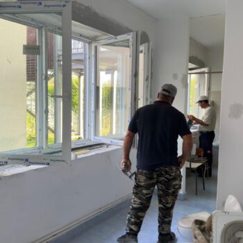 • Înlocuirea tâmplăriei exterioare (geamuri) cu tâmplărie din PVC cu geam termopan triplustratificat, proces finalizat în mare parte zilele trecute, reducând astfel aproape la zero pierderile de căldură.