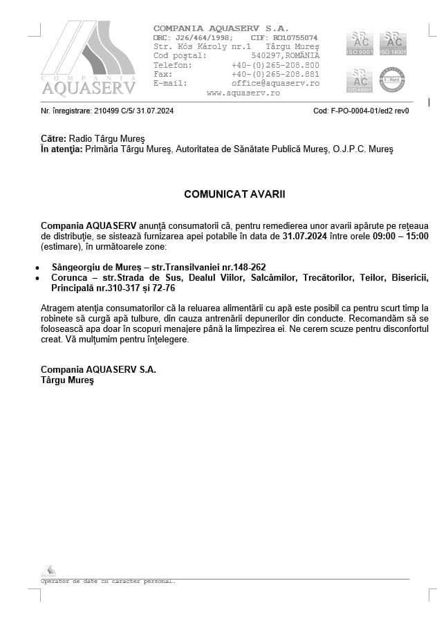 Scopul nostru este de a comunica în mod eficient și transparent, astfel încât să aveți la dispoziție informații actualizate.