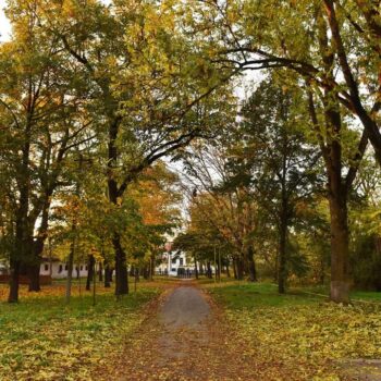 Din punct de vedere al stilului parcul acesta a fost construit ca ,,parc englezesc”: în primele decenii a mascat castelul, copacii fiind plasați pe marginea unui drum de acces sinuos care făcea legătura cu șoseaua principală. În 1962 însă o furtună din luna august a deteriorat semnificativ arborii parcului, mai mulți copaci au fost doborâți, și anume uriași pini de pădure și frasinii. În momentul în care s-a trecut la înlocuire acestor copaci, cei noi au fost plasați într-o linie dreaptă. În consecință și drumul de acces a devenit drept. Această intervenție nu a afectat restul copacilor din parc, păstrându-se într-o stare bună teiul, stejarul, salcâmul, arțarul, castanul sălbatic, tisa, cornul, chiar și aleea înconjurată de arbuștii de corn. Totuși trecerea vremii și-a lăsat amprenta pe acești copaci faimoși. Aleea mai sus amintită este de fapt o colecție de soiuri, mai exact 28 de soiuri de corn, acest gen fiind reprezentat din punct de vedere al timpului de coacere, al formei, al dimensiunii fructelor iar conținutul de substanțe medicinale, compoziția chimică, eficacitatea au fost testate în ultimele decenii.